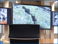 このエリアには58インチテレビが4台、50インチテレビが2台、20インチテレビが5台設置されており、各テレビ局の放送や衛星通信用移動中継車、ヘリコプター等から送られてきた映像等でも被害状況が確認できるようになっています。