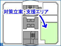 ここでは、情報収集・分析エリアからまとめられた情報を元、どこにどのくらいの広域応援部隊(自衛隊等)を配置するのか等を検討します。