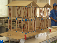筋交いがバランスよくされた家と、バランスの悪い家では、地震が起きたとき揺れ方がどう違うのかを見比べられます。