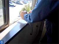 今回の実験では窓枠タイプを使いましたが、窓に手摺がついているところでは使用できません。その場合手摺にかけて使用するタイプもあります。 |