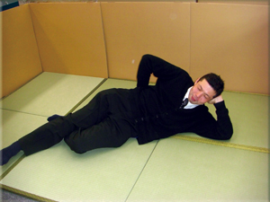 グリーンという色目と畳の親しみが心理的な効果を生み出しそうです。