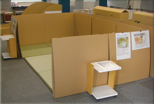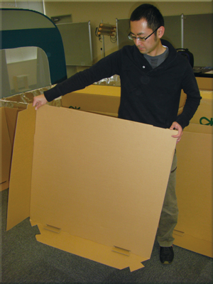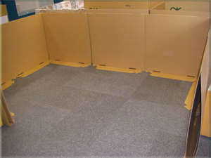 このダンボールをいくつも組み合わせることによって、部屋を作っていきます。