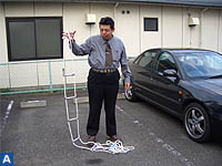 ステップダンの先端に金具が付いているので、それを降りる箇所につけるだけです。これなら、お年寄りや子どもでも簡単に取り付けることができます。単純ですが、こういう工夫が一番大事。