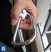 ・ つり下げ金具(カラビナ)直径10mm鋼材 強さ1,500kg(ニッケルメッキ付)