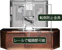 point1 直接転倒防止金具が付いていて、どんな薄型テレビにも対応!