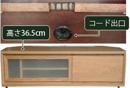 このTVボードは後ろの両角がカットされているので、コーナーにもぴったりはまります。もちろん、壁面に設置してもOK。もともとテレビを置いてあった位置にそのまま設置できるので、模様替えの必要もありません。裏にはコードを通す穴やへこみがあるので、コードが邪魔になる心配もなく、どこにでも設置可能です。