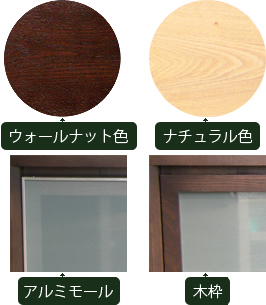 扉:ミストガラス5mm厚使用、周囲はアルミモール(アルミモールタイプの場合のみ)